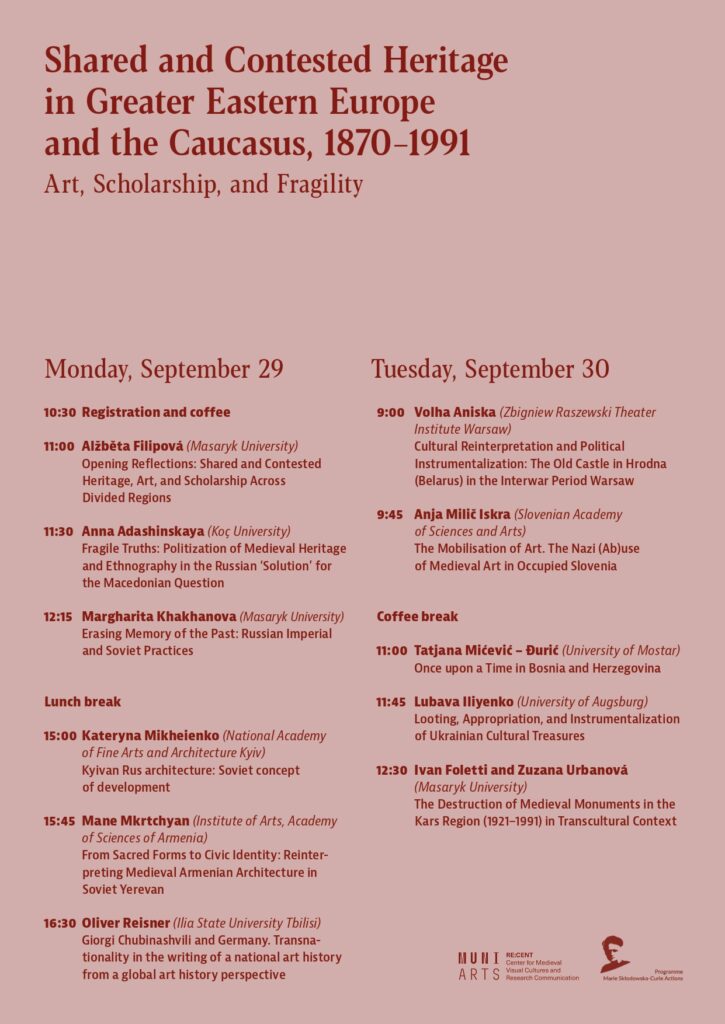We warmly invite you to the international scholarly conference Shared and Contested Heritage in Greater Eastern Europe and the Caucasus, 1870-1991. Art, Scholarship, and Fragility, which will take place on Monday, September 29, and on Tuesday, September 30, at the Hans Belting Library, Faculty of Arts, Masaryk University.