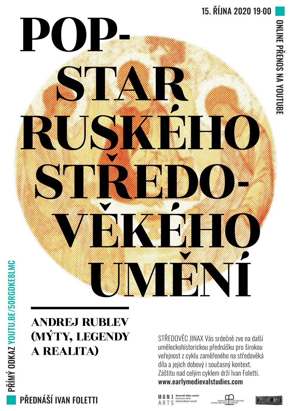 Přednáška proběhne 15. října 2020 v 19 hodin jako živý přenos na Youtube kanálu Centra raně středověkých studií. Odkaz na vysílání naleznete zde. Pro zájemce, kteří se nemohou zůčastnit živého přenosu, bude po ukončení přednášky na Youtube profilu Centra umístněn video záznam celé přednášky (zde).