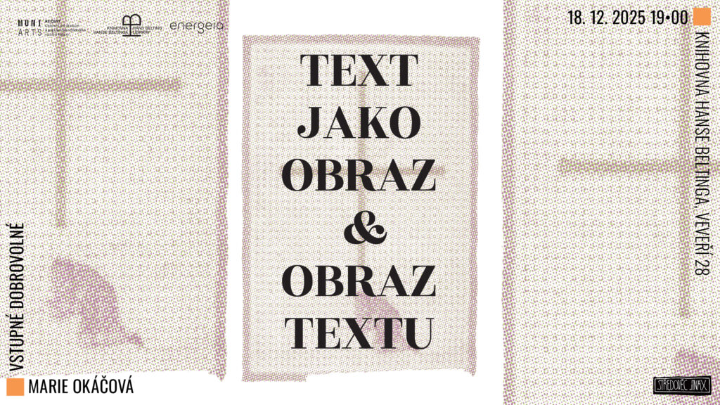 Srdečně vás zveme na závěrečnou přednášku cyklu StředověC JinaX v tomto semestru, která tentokrát nezůstane jen u dějin umění – filoložka Mgr. Marie Okáčová, Ph.D., nás v přednášce Text jako obraz a obraz textu – od (pozdní) antiky po modernu provede fascinující cestou vzájemného proplétání vizuální a jazykové komunikace napříč staletími.